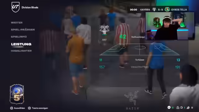 05:20:37Der Streamer analysiert den Markt für Team of the Year-Karten und vermutet, dass die Preise wieder steigen werden, da der Grind von vielen überschätzt wurde und nun nach den Kufen gekauft wird. Er selbst hält sich damit zurück. Für die Weekend League Rivals hat er erneut eine hervorragende Zeit von 21 Punkten erreicht und ist stolz darauf, in Division Elite aufzusteigen. Dies sieht er als mental starkerkend an.