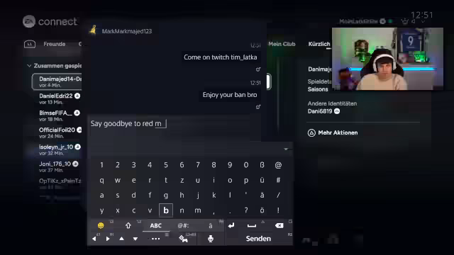 01:41:37Im laufenden PlayStation Cup trifft der Streamer auf einen Gegner, der ihn um ein Tor bittet. Er steht vor einem moralischen Dilemma: Einerseits will er fair spielen und nicht einfach Tore verschenken, da es das Spielerlebnis für beide Seiten und die Community negativ beeinflusst. Andererseits fühlt er sich in der Pflicht, da der Gegner ihn darum bittet. Der Gegner droht damit, ihn zu melden, falls er kein Tor bekommt.
