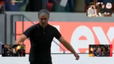04:49:08Ali G schießt ein starkes Tor und gleicht auf 1:1 aus. Kommentatoren preisen seinen überragenden Abschluss und erklären die Kontrollelemente, die er dafür benutzt hat. Ali G scheint sehr in Spiel und gibt nicht auf, weiterhin Druck aufzubauen. Gleichzeitig wird über die Notwendigkeit diskutiert, den Ball bei Führung in der Schlussphase zu halten, was Ali G hier jedoch nicht beachtet.