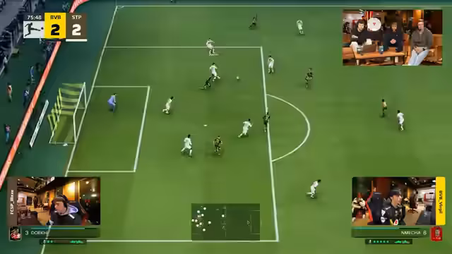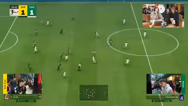 05:47:14Das Finale stand Borussia Dortmund gegen FC St. Pauli gegenüber. Die Aufstellungen zeigten Virgil gegen Blakes und De Nino gegen Bergerlein. Beide Teams hatten eine starke Saison – St. Pauli war bereits mehrmals im Finale, Dortmund zuletzt ungeschlagen. Streamer analysierten die Spielweise und die Stärken beider Teams, insbesondere die offensivstarke Leistung von St. Paulis Blakes und Virgils Fähigkeit, unter Druck zu bestehen. Erste Halbzeit endete unentschieden bei 2:2.