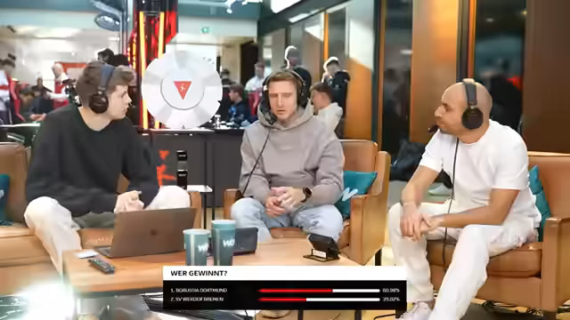 05:30:35Der Stream setzte sich mit einem unterhaltsamen Tischtennis-Duell zwischen den Moderatoren fort, bei dem Tim Latka gegen Julian antrat. Das Match wurde bis fünf Punkte gespielt und Tim Latka gewann knapp mit 5:4. Währenddesses wurde ein Giveaway für Bundesliga-Tickets angekündigt, bei dem Zuschauer durch Tipps im Chat gewinnen konnten. Es gab auch Diskussionen über verschiedene Bundesliga-Stadien und persönliche Favoriten der Kommentatoren.