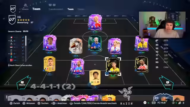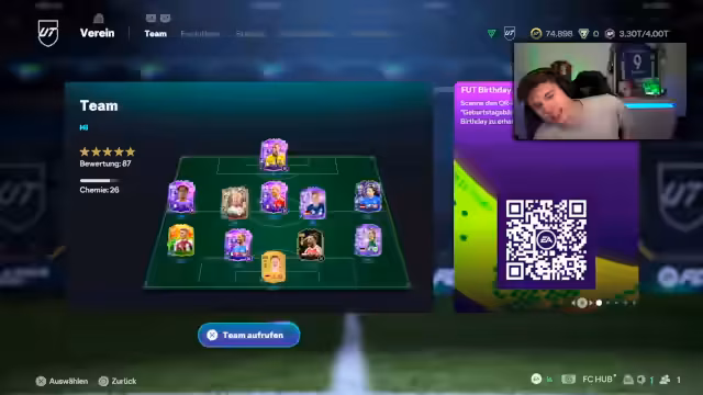 01:32:01Der Fokus liegt auf dem Account Battle, wo der Streamer sein Team optimiert und neue Spieler für den Foot Birthday Cup sucht. Es geht um die Statistiken der Spieler und die Verteilung von Playstyles und Chemie. Die Suche nach einem Innenverteidiger und die Verärgerung über einen schlechten Pick werden thematisiert, ebenso wie der Druck im Cup-Spiel gegen den Gegner.
