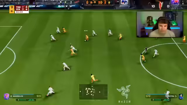 04:53:42Nach einem Rückstand in einem anderen Spiel wechselt der Streamer seine Taktik komplett und spielt ab der 50. Minute nur noch defensiv und auf Zeit. Er gibt den Spielern die Anweisung, hinten sicher zu stehen und keine weiteren Gegentore zu kassieren. Diese extrem passive Spielweise, die er als 'Verwalten' bezeichnet, soll ihm einen Punktgewinn sichern. Er zeigt sich frustriert, dass er sich gezwungen sieht, so zu spielen, um überhaupt Ergebnisse zu erzielen.
