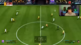 04:45:05Ein Spiel gegen einen starken Gegner verläuft dramatisch. Der Streamer gerät mit 3-0 zurück und kritisiert heftig die Spielentscheidungen des Spiels, die seiner Meinung nach allesamt gegen ihn ausgefallen sind. Er beschreibt ein Gefühl des 'Wegescriptet-Werdens'. Mit dem letzten Einsatz an Kraft und einem Freistoß, der noch einmal Hoffnung macht, kann er das Spiel noch drehen und mit 4-3 für sich entscheiden, wobei er das Gegentor durch eine rote Karte für den Gegner als 'geschenkt' bezeichnet.