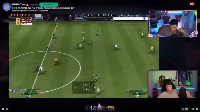 07:25:01Der Streamer trifft im Finale auf einen bekannten Gegner, gegen den er letzte Woche verloren hat. Beide Teams spielen hektisch und das Spiel ist von Ballverlusten geprägt. Der Streamer rät dem Gegner, ruhiger zu spielen und die Zentralemittelfeldspieler (ZMs) besser einzubinden, um Druck aufzubauen, anstatt zu ruschen.