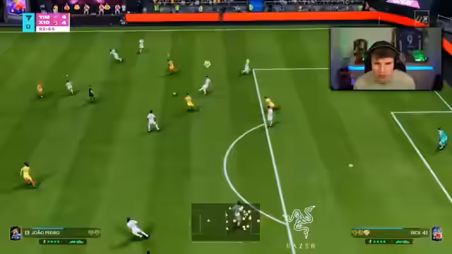 03:39:30Der Streamer beginnt um 10 Uhr mit den ersten Spielen der Weekend League. Er nutzt sein Team im 4-5-1-System und spielt bewusst ohne Anweisungen, um seine Spieler in ihrer natürlichen Leistung zu beobachten. Besonders hervorgehoben wird eine Spielszene, in der Lamin Jamal trotz eines unvorteilhaften Playstyles ein Tor erzielt, was den Streamer zu der Entscheidung bewegt, ihm das Finesse-Skill-Verfahren zu geben. Er führt ein weiteres Spiel gegen einen Gegner durch und steht 1-0 in Führung.