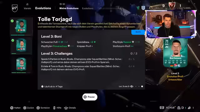 01:26:13Nach dem Erreichen von Rang 2 freut sich der Streamer über die erhaltenen Belohnungen, darunter 10x5 Plus-Pakete, 1 von 5 Future Star und Future Star Icon Picks sowie 125.000 Münzen. Er äußert seine Begeisterung über die Möglichkeit, eine Icon-Karte zu ziehen und plant, die Münzen für Spieler wie Cafu oder andere Team of the Year-Karten auszugeben. Er öffnet ein 85+-Pack und entscheidet sich für einen Inform-Spieler, da diese immer noch teuer sind. Trotz einiger weniger guter Karten in den Packs erzielt er durch Playerpicks bereits 110.000 Münzen. Er erwähnt, dass durch den Mini-Release am Sonntag die Wahrscheinlichkeit auf gute Karten gesunken ist. Trotzdem hofft er auf weitere gute Ziehungen und überlegt, ob er ein zweites Team aufbauen soll, eventuell ein U23-Team, in das auch Spieler wie Lamin passen würden. Er betont, dass er Best nicht spielen will, da er ihn im letzten Jahr schon zu viel gespielt hat.