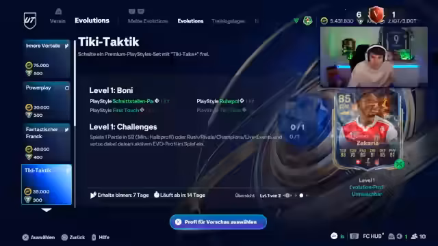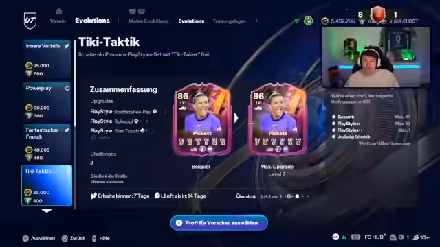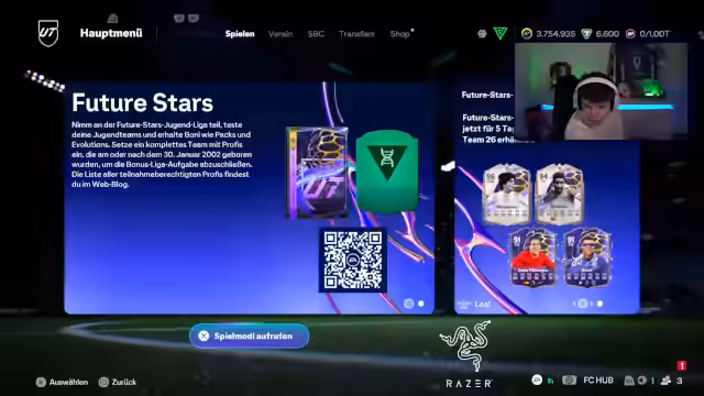 00:02:24Herzlich willkommen zu einem gemütlichen Stream, der hauptsächlich im Zeichen von Weekend League und Future Stars steht. Der Streamer plant, einige Evos nachzuholen und gibt zu, sich noch nicht getraut zu haben, am Team of the Year teilzunehmen. Es gibt einige Herausforderungen bei der Erstellung der Evos, insbesondere fehlen bestimmte Rollen für die geplanten Karten, was die Aufwertung kompliziert macht. Der Fokus liegt darauf, mit einem neu aufgebauten Team in die Weekend League zu starten.