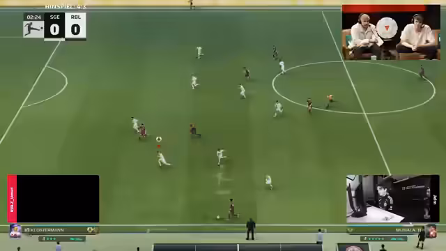 00:32:27Die Konferenz beginnt mit den Begegnungen FC St. Pauli gegen Kaiserslautern und Eintracht Frankfurt gegen RB Leipzig. Bei St. Pauli zeigt Kamal eine starke Leistung und führt sein Team mit mehreren Treffern zum knappen 6:5-Sieg. Besonders auffällig ist seine offensive Ausrichtung, die ihm regelmäßig Tore einbringt, auch wenn seine Defensive Schwächen aufweist. Gleichzeitig sichert sich Eintracht Frankfurt durch den jungen Erdem einen wichtigen 4:3-Sieg gegen Leipzig, der den Abstiegskampf der Frankfurter vorantreibt.