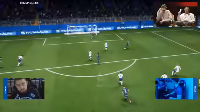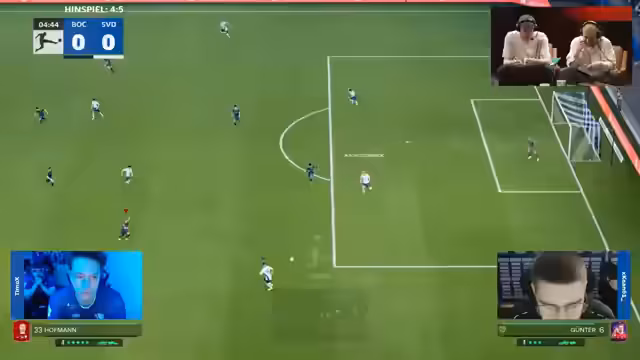 02:06:33Die Streamer berichten über den Spielverlauf zwischen Timo und Sean. Timo geht früh in Führung, aber gleicht später aus. Der Streamer analysiert die Taktik und stellt fest, dass es ein sehr ausgeglichenes Spiel ist. Es gibt mehrere Tore, Chancen und Führungwechsel. Die Streamer kommentieren die agressive Spielweise und die offensiven Aktionen beider Spieler.