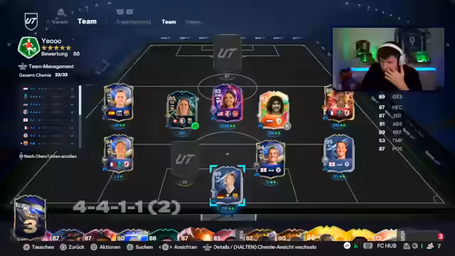 00:10:07Der Streamer befasst sich intensiv mit den Evokarten und den damit verbundenen Herausforderungen. Er benötigt Icons für das Team, erwähnt aber, dass Thuram zu teuer geworden sei und eine neue Version wahrscheinlich in Packs erscheinen werde. Er überlegt, Jascha im Tor zu spielen, da er Spielstilfreiheit habe. Für die Abwehr sucht er nach einem starken Verteidiger, der auch eine körperliche Präsenz hat, und findet Alberto und Vittic als mögliche Optionen, aber auch deren Kosten und Spielweise sind Thema.