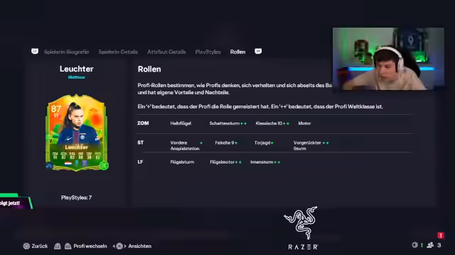 03:29:17Der Streamer geht im Detail auf die Evolution seines Spielers Hullit ein, die für einen Chat-User namens Miles vorbereitet wird. Er erklärt die Wichtigkeit von Playstyles wie Tiki-Taka und empfiehlt, den Haken als offensive Option zu vergeben. Da Miles erst Level 0 ist, handelt es sich um ein Langzeitprojekt, das aber in den nächsten zwei Wochen gut vorankommen soll.