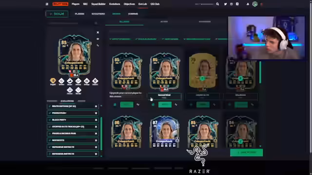 01:21:44Die Streamer gibt Einblicke in die Auswahl und Bewertung der Karte. Er sagt, dass es zwar 94er-Evos mit besseren Stats gegeben hätte, diese jedoch nicht verlinkbar waren. Er betont, dass die Werte und Spielstile, die er gewählt hat, optimal für ihren beabsichtigten defensiven Zweck sind. Er zeigt Bilder von alternativen, möglichen Karten auf, die er in Betracht gezogen hatte, bevor sich für die aktuelle Entscheidung entschied.