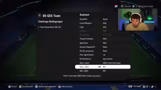 00:04:04Nach den technischen Problemen konzentriert sich der Streamer auf den Rivals-Grind. Er ist in Division 5 und muss zwei Divisionen aufsteigen. Sein Ziel ist es, mit einem Street-Team zehn Spiele zu gewinnen, ohne eine einzige Niederlage einzustecken. Er zeigt sein aktuelles Team und erklärt, dass er unbedingt einen neuen Stürmer ziehen muss, da seine aktuelle Besetzung nicht überzeugt. Vor allem der Spieler Laborde wird als „Scheiße“ bezeichnet. Der Streamer gibt zu, dass sein PC auch während des Spielens Probleme macht, was seine Performance beeinträchtigt.