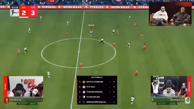 03:59:10Im Spiel zwischen Mainz und St. Pauli kommt es zu einem unerwarteten technischen Problem mit der Videowand, was die Stimmung etwas trübt. Es wird festgehalten, dass St. Pauli eine überragende Saison spielt, obwohl ein potentieller Star-Spieler nur auf der Bank sitzt. Die Kombination aus Blakes und Berger wird als extrem stark für das Team angesehen. Beim Tor der Mainzer wird eine kontroverse Ecke gezeigt, was beim Streamer Frustration auslöst, da er Ecken als übermächtig empfindet und sie hasst. Das Spiel endet 2:1 für Mainz.