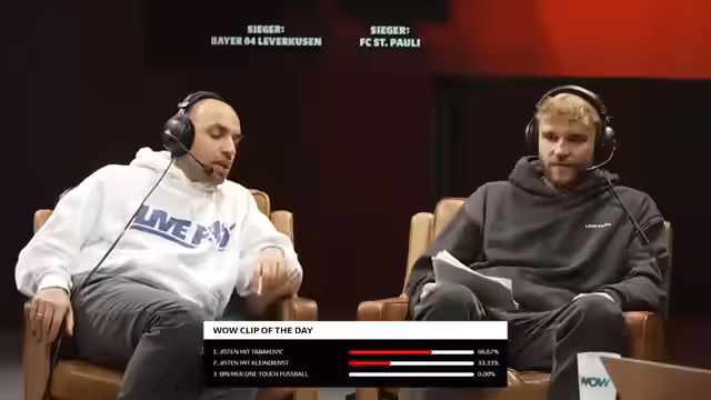 04:48:46Die Regie präsentiert die täglichen Highlight-Clips. Das persönliche „Warclipp of the Day“ des Streamers ist ein Tor von Tabakovic mit einem schönen Dribbling. Weitere Clips zeigen ebenfalls ansprechende Tore von Kleindienst und eine herausragende Kombination der Bremer. Die Zuschauer werden aufgerufen, über ihren persönlichen Favoriten abzustimmen. Nach einer kurzen Diskussion wird Tabakovic als Gewinner des „Wow-Clip of the Day“ gekürt. Der Streamer schließt den Abschnitt mit dem Hinweis auf den baldigen Stream zum VBL-Showdown.