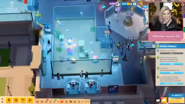 04:12:34Es gab Helikopterschaden, aber kein weiterer Helikopterpilot war verfügbar. Es wurde versucht, die Unterhaltung zu steigern. Es wurden Automaten aufgestellt und Dekorationen hinzugefügt, um die Begeisterung zu erhöhen. Kriminelle verwüsteten das Museum, was unbemerkt blieb. Es gab Probleme mit der Musik im Stream, die möglicherweise stummgeschaltet wurde. Es wurden Hologramm-Dekorationen benötigt. Eine Expedition nach Weltraum wurde gestartet. Es fehlte an Dekorationsbegeisterung. Ein Teppich wurde platziert, um die Besucher zufrieden zu stellen. Es wurde der nächste Stern angestrebt. Es gab Probleme mit durstigen Besuchern. Es wurden Aufgaben für das Museum festgelegt, wie das Finden und Aktivieren des Exponats Anomalie Mondschrott und das Ausstellen eines Weltraum-Artefakts. Es wurde ein Weltraum-Scooter analysiert und ein Hausmeister gerufen. Mitarbeiter erhielten eine Gehaltserhöhung. Es wurde ein interaktives Exponat hergestellt. Eine Marketing-Kampagne wurde gestartet. Es fehlte ein Analytiker, der eingestellt und weitergebildet wurde.