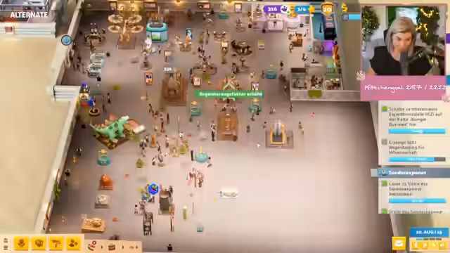 06:44:43Der Streamer befindet sich in einem Zustand der spielerischen Überforderung und des chaotischen Managements. Es wird über den Aufbau eines Museums gesprochen, wobei der Fokus auf dem Erreichen höherer Sterne liegt, was durch eine unübersichtliche Anordnung und ineffektive Mitarbeiterverwaltung erschwert wird. Der Umgang mit negativen Ereignissen wie Diebstählen, Vandalismus und kranken Mitarbeitern wird als ständige Herausforderung beschrieben, die den Fortschritt bremst. Eine wichtige Rolle spielt die zufällige Entdeckung von Dieben und der Versuch, verlorene Gegenstände zurückzubekommen, was zu wiederholten Stressmomenten führt.