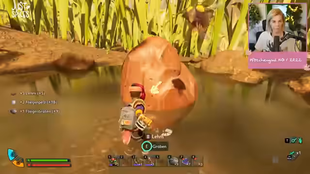 04:09:06Der Streamer sucht seinen Rucksack, der ihm 750 Meter entfernt angezeigt wird. Um den Weg dorthin zu nehmen, plant er, zuerst Spinnentoxin von einer Wolfsspinne zu besorgen. Nachdem er versehentlich in eine Gaskammer tappt, muss er sich zurückziehen. Gemeinsam mit seinem Mitspieler Tine erkundet er die Höhle, die er als gefährlich einschätzt. Die Kakerlake, die in der Nähe ist, scheint zunächst keine Bedrohung darzustellen, solange man nicht in ihrem Bereich steht. Anschließend positioniert sich der Streamer in einer guten Schussposition für den Kampf gegen die Spinne.