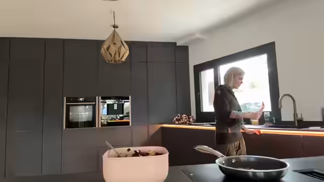 Es wurde gezeigt, wie eine Alltagsroutine im Wohnzimmer begann. Dabei wurden auch die Hauskatzen erwähnt. Der Fokus lag auf der spontanen Zubereitung eines Crispy Rice Salats. Ein Kochunfall mit verbrennendem Reis sorgte jedoch für eine Unterbrechung, die aber gelöst werden konnte.