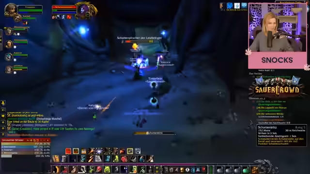 01:54:41Nachdem sie sich in Sturmwind getroffen und die Gruppe mit einem Heiler namens Kecklack komplettiert haben, machen sie sich auf den Weg zu Schattenfang. Der Streamer erklärt die Mechaniken des ersten Raumes und warnt vor den gefährlichen Gegnern und der Notwendigkeit, den Fluchtweg freizuhalten. Sie beginnen mit dem ersten Pull und arbeiten als Team, um die Gegner zu besiegen. Der Streamer gibt strategische Hinweise und lobt die zunehmend bessere Kontrolle des Pets des Kriegers.