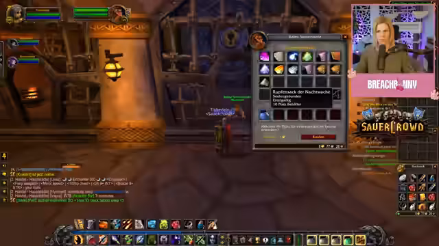 03:11:07Der Streamer gibt einen finalen Call für die Gruppe, die Burgschattenfang betreten möchte. Er versichert, dass er einen sehr guten Heiler namens Kecklack in der Gruppe hat und gibt die Mitspieler bekannt. Kurz darauf stellt er fest, dass ein weiterer potenzieller Tank namens Jonsmann leider nicht verfügbar ist. Daraufhin beschließt der Streamer, selbst als Tank einzuspringen, und bereitet daraufhin den finalen Start in den Dungeon vor, während die anderen auf ihn warten.