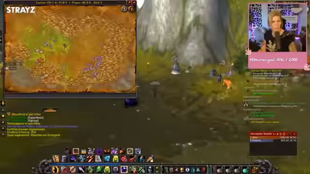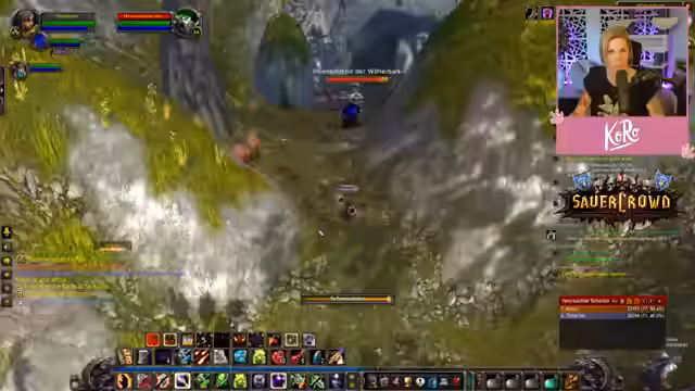 03:05:41Der Stream konzentriert sich auf das Erfüllen von Quests und das Töten von Monstern zur Stufenaufwertung. Zunächst wird die Suche nach einem Buch für Schweren Seidenverband erwähnt, gefolgt von einer Quest, die zu einem vermeintlich buggy verhaltenen NPC führt. Die Gruppe entscheidet sich, eine gefangene Prinzessin zu retten, was als sehr schwierig und für zwei Spieler ausgelegt gilt. Anschließend werden Körner gesammelt, ein Horde-Camp entdeckt und umgangen, sowie Kobolde bekämpft, um eine von zwölf Teilen einer Quest zu erhalten. Ein weiterer Kampf gegen einen Elite-Gegner endet mit einem Level-up des Streamers.