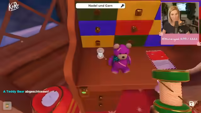 05:57:55Es werden Briefe an den Weihnachtsmann gefunden und vorgelesen, darunter der Wunsch nach einem Pony. Ein Zug-Spielzeug für Robin soll zusammengebaut werden, wobei Holzwagen, Kohlewagen und Personenwagen korrekt angeordnet werden müssen. Die Information, welche Spielzeuge benötigt werden, fehlt zunächst. Ein Schaukelpferd wird als mögliches Pony in Betracht gezogen. Die Streamerin sortiert ihren Loot und entdeckt farbige Herzen an einem Weihnachtsbaum, die zu passenden Schubladen führen. Ein URL-Decoder wird entdeckt, um Spielzeugmaterial und -art zu entschlüsseln. Ein Plüschbär wird identifiziert und mit Nadel und Faden genäht. Das letzte Geschenk, ein Pony bzw. Schaukelpferd, wird gesucht. Eine Zahlenkombination (A4, B2, C3, D3, D4) wird an einem Gerät eingegeben, um das Schaukelpferd zu erhalten. Die erstellten Spielzeuge (Teddybär, Schaukelpferd, Zug) werden in die Qualitätssicherung gegeben.