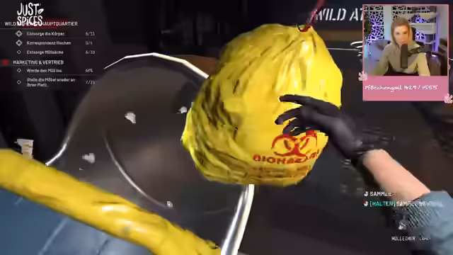 02:50:25Während der Reinigungsarbeiten kommt es zu humorvollen Interaktionen, wie der Frage, ob man Müll in den Mülleimer legen kann oder ob Licht für „Weicheier“ ist. Ein besonders amüsanter Moment entsteht durch das Vorlesen einer satirischen Nachricht über jemanden, der versucht, Vorstellungsgespräche in einer Sauna zu organisieren und nackt arbeitet, was zu Verwechslungen und Belustigung führt. Die Streamerin entdeckt immer mehr Blut und Schmutz, was die Aufgabe erschwert. Es wird diskutiert, wie man am besten vorgeht, und der Chat wird weiterhin um Ratschläge gebeten. Technische Probleme mit dem Spiel, wie das Nicht-Aufstellen von Gegenständen, tragen zur Komik bei, während die Streamerin versucht, die Umgebung zu ordnen und die Beweise zu sammeln.