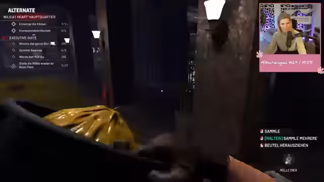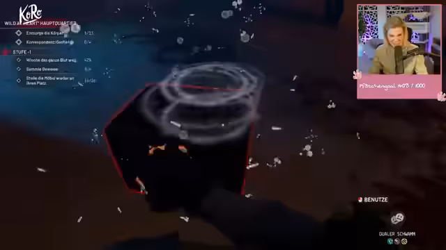 02:32:19Der Stream beginnt mit der Erkundung einer chaotischen Szene, die als „moderne Kunst“ oder „krasse Party“ beschrieben wird, mit unterschiedlichen Ebenen und viel Unordnung. Das Ziel ist es, den Bereich zu reinigen, was sich als schwierig erweist, da die Streamerin lange nicht mehr gespielt hat und sich an die Mechaniken gewöhnen muss. Besonders der Umgang mit dem Eimer und verschiedenen Reinigungsmitteln bereitet anfänglich Probleme. Es wird vermutet, dass eine Axt bei einem Vorfall verwendet wurde, und es gibt viel Blut an den Wänden, was die Reinigung erschwert. Ein Greenscreen und andere Gegenstände müssen bewegt und gereinigt werden, bevor sie an ihren Platz gestellt werden können. Die Streamerin bittet den Chat um Hilfe bei der Lokalisierung von Gegenständen und der Bewältigung des Chaos.