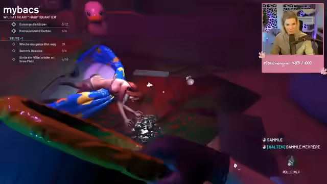 04:09:38Nach der ausführlichen Erklärung zur Katzenaktion kehrt der Streamer zu den Reinigungsaufgaben zurück. Die Hauptaufgabe besteht darin, Möbel wieder an ihren ursprünglichen Platz zu stellen und Gegenstände wie Stühle, Tastaturen, Müll und sogar eine Leiche metaphorisch zu platzieren. Es wird eine große Verwirrung über den Verbleib diverser Gegenstände deutlich, besonders bei einem fehlenden Sofakissen, einer Tastatur und einem Feuerlöscher. Der Prozess wirkt dadurch frustrierend und unkoordiniert, da der Streamer ständig zwischen den Ebenen des Gebäumes hin- und herläuft und auf der Suche ist.