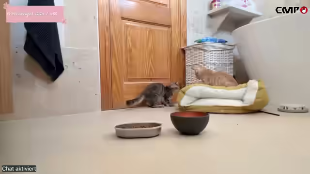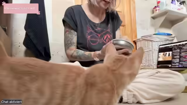 03:56:31Die Streamerin entdeckt Durchfall bei einer der Katzen und beschließt, eine Kotprobe zu entnehmen, um die Ursache zu ermitteln. Sie erklärt den Ablauf der Probenentnahme und -untersuchung mithilfe eines Testkits. Während sie auf das Ergebnis wartet, reinigt sie das Katzenklo und füllt frisches Streu nach. Die Streamerin füttert die Katzen und bemerkt, dass einige von ihnen zögern, herauszukommen. Sie vermutet, dass die Hunde ebenfalls Hunger haben und plant, sich auch darum zu kümmern. Die Streamerin erwähnt, dass sie sich selbst auch etwas zu essen machen muss und dass sie versucht, daumenfreundlich zu sein, weil ihre Daumen schmerzen. Sie entschuldigt sich für die kurze Abwesenheit und bittet den Chat, die Katzen zu beschäftigen.