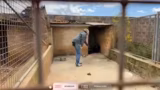 02:18:35Nachdem die Katze aus ihrem ersten Versteck bewegt wurde, ist sie nun an einem neuen Ort eingeklemmt. Die Streamer arbeiten koordiniert zusammen, um das Tier sicher zu fangen. Ein Streamer positioniert sich, während der andere versucht, die Katze vorsichtig zu berühren und zu leiten. Es wird erwähnt, dass der Baum im Weg ist und man vorsichtig sein muss, nicht durchzubrechen. Die Situation ist prekär und erfordert konzentrierte Bewegungen, um die Katze nicht zu verletzen oder zu erschrecken. Ein Netz wird als dringend benötigt angesehen, um den Einfang zu erleichtern.