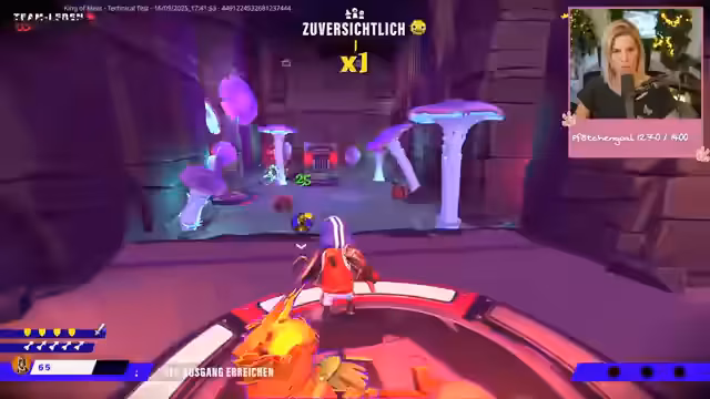 03:37:23Der Stream wechselt das Thema und startet ein Multiplayer-Spiel mit dem Chatnamen 'King of Meat'. Es wird ein Jump'n'Run-Party-Game mit Dungeon-Mechaniken vorgestellt, in dem bis zu vier Spieler zusammenarbeiten. Erklärt werden die Steuerung, das Tutorial, das Freischalten der Mehrspieler-Lobby und das Finden von Mitspielern innerhalb des Spiels sowie im Discord-Server. Ziel ist es, in den Dungeons Kronen zu sammeln und Gold zu verdienen.