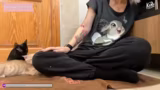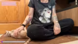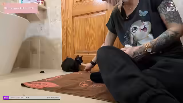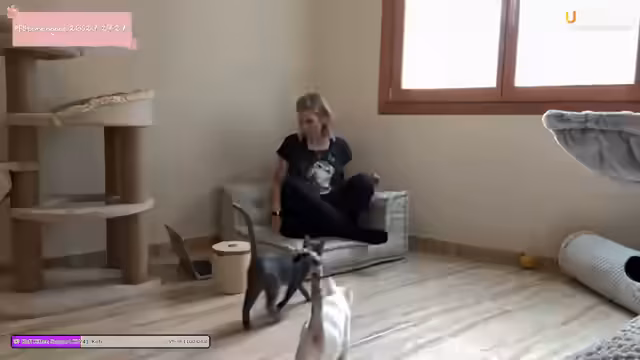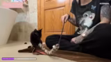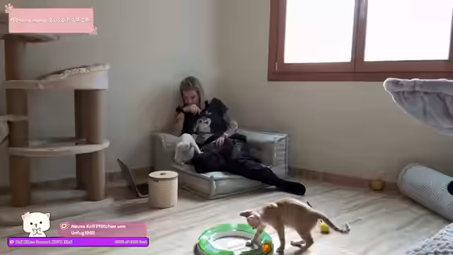 01:32:12Die Hoffnung auf den ersten physischen Kontakt zu Dobby wächst. Sie zeigt deutlich Neugier und sucht die Nähe des Streamers, lässt sich aber noch nicht streicheln. Dies wird als 'Icebreaker' bezeichnet und als große Annäherung nach anfänglicher extremer Angst gewertet. Die Beobachtung, dass Dobby den Rücken zudreht, wird als mögliche positive Geste interpretiert, da sie sich in Gegenwart des Streamers entspannt.