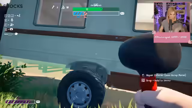 04:46:32Der Streamer unternimmt einen Versuch, eine schwierige Geländestrecke zu überqueren, scheitert aber und bleibt mit dem Fahrzeug stecken. Es folgt eine Phase des Sammelns von Reparaturteilen wie Schrottmetall und EpiPens. Dabei werden auch Gegenstände wie Burger-Dinger und ein Bärenspray gefunden. Das Hauptziel ist es, das beschädigte Auto zu reparieren, um es weiter bewegen zu können.