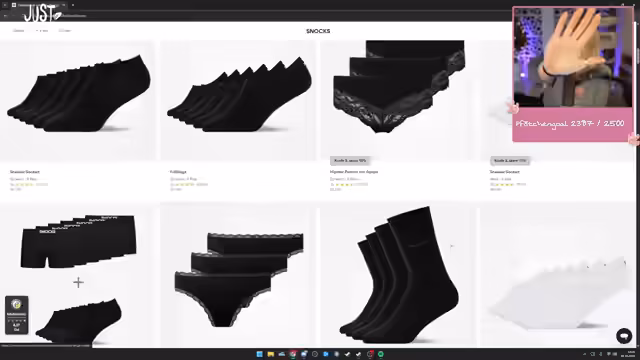 01:18:19Die Tragebarkeit der Hipster wird bewertet, diese zeichnen sich unter Leggings nicht ab, was von der Dicke der Hose abhängt. Es wird ein Bundle mit Socken erwähnt. Der Stream vergleicht die Rabatte: Einzelkauf mit 20% Code ist günstiger als das Bundle mit 15% Rabatt. Viele Zuschauer bestätigen, vor dem Kauf immer nach Rabattcodes zu suchen, was eine gängige Sparstrategie ist.