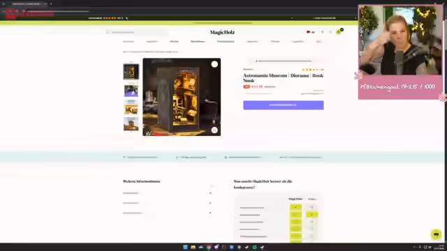 01:56:51Der Streamer kündigt eine Kooperation mit dem Puzzle-Shop Magic Holz an. Er zeigt diverse Produkte wie 3D-Holzpuzzle, Book Nooks und mechanische Modelle wie ein Cello und einen Flipper. Er erklärt, dass er derzeit eine Pause von den Partnerschaften einlegt, da er durch Baustelle und anderweitige Verpflichtungen nicht mehr die nötige Qualität und Zeit gewährleisten kann. Trotzdem empfiehlt er den Shop und gibt den Rabattcode MH-TinkerLeo für 20% Rabatt aus.
