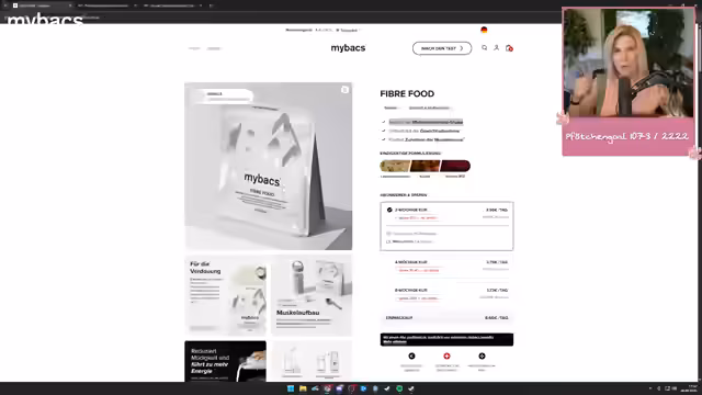 01:07:05Es wird über die positiven Erfahrungen mit den Diet Bags von MyBags gesprochen, insbesondere im Bezug auf die Reduzierung von Heißhunger auf Süßigkeiten. Die Produkte enthalten Reducose, einen Extrakt aus dem weißen Maulbeerbaum, der den Kohlenhydratstoffwechsel unterstützt und Blutzuckerspitzen reduziert. Es wird auch über die Daily Bitters gesprochen, die Bitterstoffe enthalten und bei akutem Heißhunger helfen können. Eine Zuschauerin berichtet von einem Gewichtsverlust von 26 Kilo und der Streamer betont, dass man stolz auf seine Erfolge sein sollte. Die Daily Bags Woman und Man werden als Unterstützung für die Darmflora und Verdauung hervorgehoben, wobei die Streamerin von anfänglichen Blähungen berichtet, die sich aber gelegt haben. Abschließend werden die Diet Bags und Daily Bags als absolute Empfehlung genannt, besonders in Kombination mit einer Ernährungsumstellung. Es wird betont, dass es einen Stuhlgang-Chart gibt, falls jemand seinen Stuhlgang beurteilen will. Die Streamerin kombiniert die Einnahme der Produkte mit einem großen Glas Wasser, Flohsamenschalen und Fiber Food am Morgen, gefolgt von Daily Greens über den Mittag und Hüttenkäse mit Gemüse am Abend, um eine ausgewogene Protein- und Ballaststoffkombination zu gewährleisten.