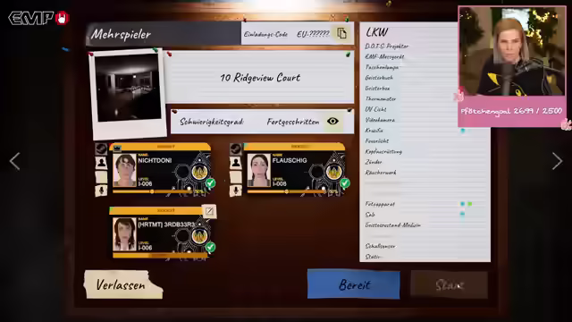 06:34:15Es wird sich bei Supportern für Raids und Abonnements bedankt. Es wird über den Schwierigkeitsgrad des Spiels diskutiert und ob fortgeschritten zu langsam ist. Es wird überlegt, auf Profi zu wechseln. Eine Spielerin hat Probleme, dem Spiel beizutreten. Es wird festgestellt, dass ein Fotoapparat fehlt und nachgekauft werden muss. Es wird humorvoll über einen Charakter im Spiel geflirtet und dessen Vorzüge werden betont. Es wird vermutet, dass der Geist ein Hund ist. Eine Spielerin muss kurz pausieren und es wird auf den Start der nächsten Runde gewartet. Es wird angekündigt, dass die nächste Runde besonders gut wird. Es wird humorvoll betont, dass die Spielerinnen eigentlich Profis sind, sich aber anfangs absichtlich schlecht anstellen, um den Zuschauern besseren Content zu bieten. Es wird über die Aufgaben im Spiel gesprochen und wie man diesen am besten nachgeht. Es wird festgestellt, dass die Wölkchen überall sind und der Strom angemacht werden muss, damit es warm wird.