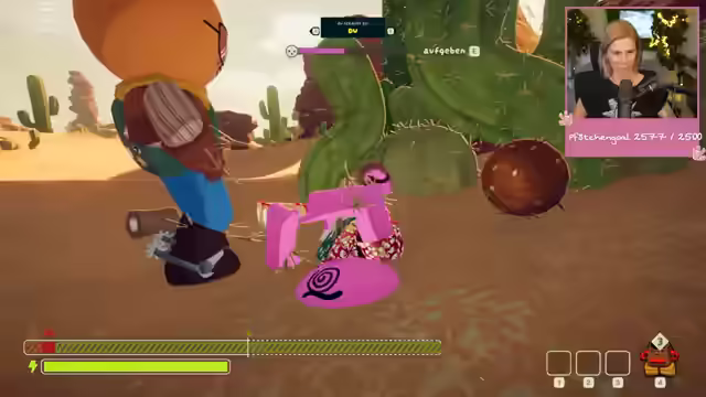 05:02:16Die Gruppe setzt ihre Reise fort, mit dem Ziel, einen Vulkan zu erreichen und dabei ein schweres Objekt namens Bibidi-Bobbidi mit sich zu führen. Die Reise gestaltet sich als beschwerlich, da die Charaktere mit Hunger, wenig Stamina und dem zusätzlichen Gewicht zu kämpfen haben. Es wird über die Navigation in der Umgebung diskutiert, wobei verschiedene Wege und Hindernisse wie Schluchten und Dynamitfelder identifiziert werden. Ein Charakter stürzt in eine Schlucht und muss versuchen, wieder aufzusteigen, während die anderen nach einem geeigneten Weg suchen, um die Herausforderungen gemeinsam zu bewältigen. Die Spieler tauschen sich über gefundene Gegenstände aus, wie zum Beispiel einen Verband, und überlegen, wie diese ihnen auf ihrem Weg helfen können.