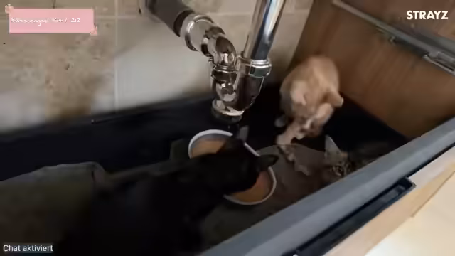 03:59:52Die drei Neuzugänge, Pumpkin, Dobby und Hermine, sind von den sechs anderen Katzen getrennt, da sie Katzenschnupfen haben, der hoch ansteckend ist. Trotz guter Fortschritte in der Behandlung, würde eine Zusammenführung das Risiko bergen, alle Katzen zu infizieren. Während der Fütterung der scheuen Katzen bemerkt der Streamer einen Blutstropfen am Katzenklo und äußert die Vermutung, dass dieser von einer Reizung durch Würmer oder Durchfall stammen könnte, da die Katzen sehr dünn sind und unter Wurmbefall litten. Es wird erwähnt, dass Pumpkin zutraulicher ist, während Dobby und Hermine noch sehr ängstlich sind und sich nur ungern anfassen lassen. Der Streamer erklärt, dass die Katzen schlecht behandelt wurden und nun langsam an Menschen gewöhnt werden sollen. Trotz der Schwierigkeiten und der kleinen Fortschritte ist die Streamerin entschlossen, den Tieren zu helfen und sie an ein Leben in Sicherheit zu gewöhnen.