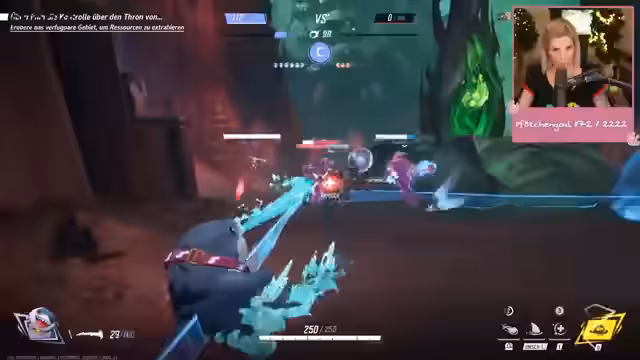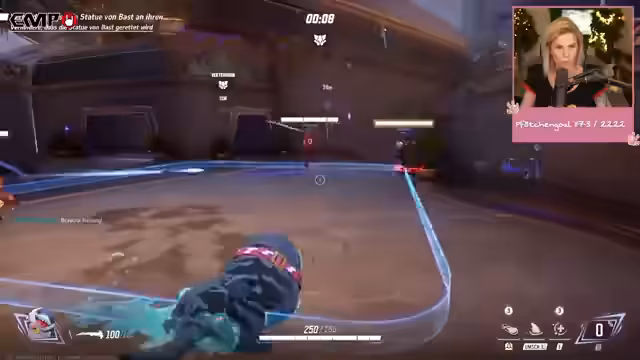 09:00:32Die Spielerin hat einen Tipp aus dem Chat erhalten, mehr mit ihrer Shift High Ground zu holen. Sie konnte die ganze Zeit durchballern, da sie ein Heal stackend auf sich hatte. Die Spielerin setzt sich auf Groot, was sie als sehr niedlich empfindet. Sie fragt, ob man Emotes machen kann. Das Team muss angreifen und die Spielerin wirft eine Heilung hoch. Die Spielerin schießt einen Gegner in die Arme eines Teammitglieds. Sie möchte einen Gegner da oben packen. Die Spielerin wird wieder runtergepflanzt und muss außen rumlaufen. Sie hätte eine Ult frei, braucht aber Gegner. Die Spielerin zündet ihre Ult, aber die Gegner gehen zurück. Sie hat 11 HP und entschuldigt sich. Die Spielerin hat gestern gerufen und das Team hat noch 99. Sie nehmen den Spot ein und die Spielerin kann einen runterschmeißen. Sie stirbt in ihrer Ult, nimmt aber trotzdem Gegner mit. Das Team wird einen letzten Push versuchen. Abschließend wird festgestellt, dass das Spiel sehr viel Spaß macht.