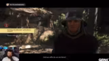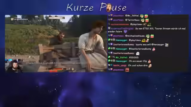 02:21:39Nachdem er Köter in seine Obhut genommen hat, setzt der Streamer seine Reise fort. Er möchte die zuvor erwähnte Axt finden und nutzt dabei einen Tipp aus dem Chat. Auf dem Weg dorthin trifft er auf zwei Kämpfer, die üben, und spricht mit ihnen über den aktuellen Krieg im Spiel. Nachdem er sich in einem Kampf geschlagen geben und sein Schwert beschädigt hat, beschließt er, nach Hause zu gehen, um seine Ausrüstung zu reparieren.