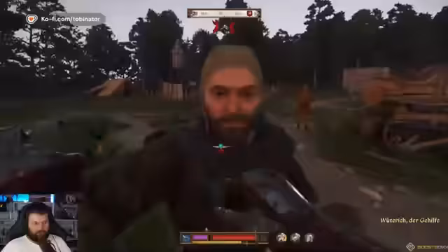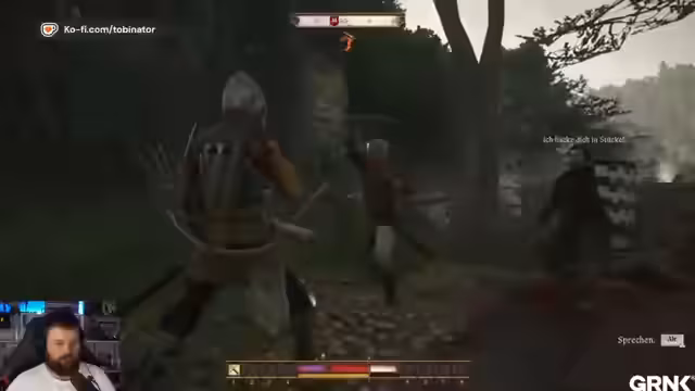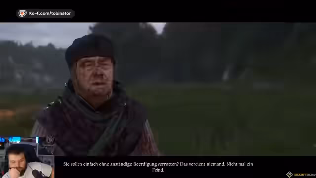 03:15:06Die Schlacht gegen die Banditen in Neberkof beginnt. Der Streamer erkennt, dass der Anführer der Banditen, Nebag, ein getarnter Adliger ist. Die Kämpfe sind heftig und der Streamer erleidet erhebliche Verluste. Trotzdem kämpft er sich durch die Festung, tötet den Anführer und erbeutet wertvolle Gegenstände. Er äußert sich beeindruckt von der Inszenierung der Schlacht.