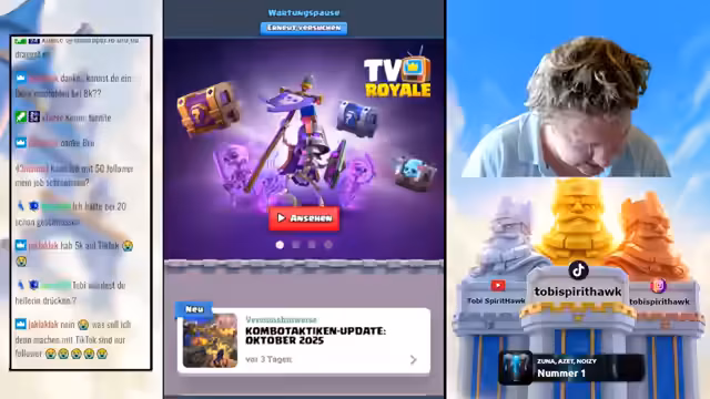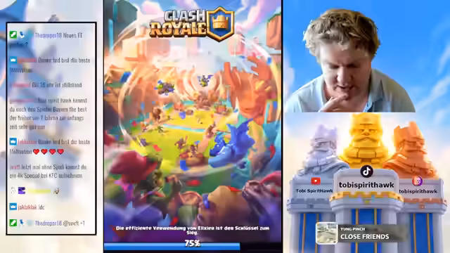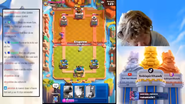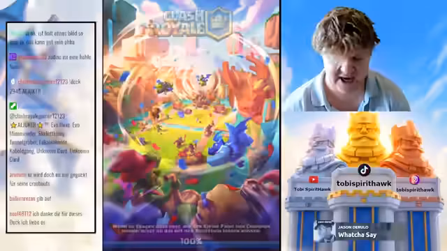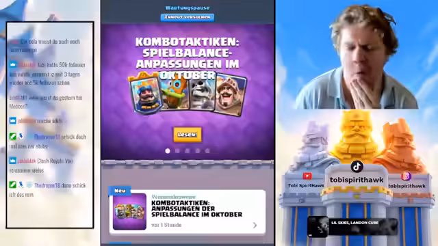 04:20:40Der Streamer wechselt zu Clash Royale, um das neue Update zu analysieren. Er erklärt, dass Champions nun mehrmals pro Spiel gesetzt werden können, was die Meta massiv verändert, insbesondere durch die Möglichkeit, Abilities sofort nach einem erneuten Champion-Setzen wieder zu nutzen – ein als „broken“ beschriebener Vorteil. Im Gameplay-Teil testet er verschiedene Decks, darunter Boss Bandit und Little Prince, und diskutiert die Auswirkungen auf Cycle-Decks. Er stellt fest, dass das Update das Spiel grundlegend verändern wird, aber nicht so übermächtig ist, wie anfangs befürchtet. Zuschauer werden gebeten, Clips und Edits für TikTok zu liefern, während er den Pass Royale durchspielt, um neue Kisten zu öffnen. Der Streamer kündigt an, dass weitere Anpassungen folgen und plant, das Update weiter auszutesten.