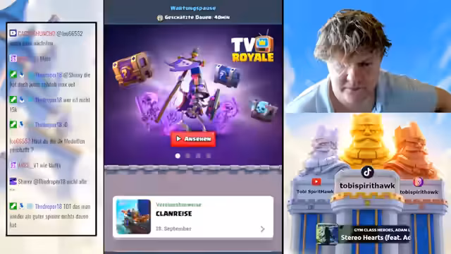05:21:52Der Streamer fasst das Clash Royale-Update zusammen: Neben den Champion-Änderungen wurden Lucky Drops und Kisten überarbeitet, Merge Packings aktualisiert und neue Kisten hinzugefügt. Er betont, dass die Champion-Fähigkeiten durch schnelles Cyclen zwar mächtig, aber nicht extrem gebrochen sind. Daraufhin kommt er auf seinen neuen YouTube-Kanal für Clash Royale zurück und bittet die Zuschauer, auf TikTok zu folgen und den neuen Kanal zu abonnieren. Nach über fünf Stunden Livestream kündigt er an, eine Pause zu brauchen, erwägt aber ein mögliches Abend-Stream. Er bedankt sich für die Teilnahme und verabschiedet sich mit guten Wünschen für die Woche.