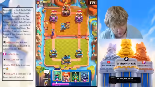 05:20:48Der Fokus liegt auf der Meta-Analyse, insbesondere auf der Dominanz der Evo-Balküre und der Kobold-Maschine. Der Streamer kritisiert die Kobold-Maschine als zu stark und nervig, da sie zu viel Schaden verursacht. Er diskutiert Deck-Optionen wie Minipacker und die Evo-Hexe und betont, dass das Cycling, also das effiziente Verwenden der Elixir-Kosten, der Schlüssel zum Erfolg ist. Er analysiert seine Spiele, kritisiert eigene Fehler und lobt gelegentlich starke Gegner.