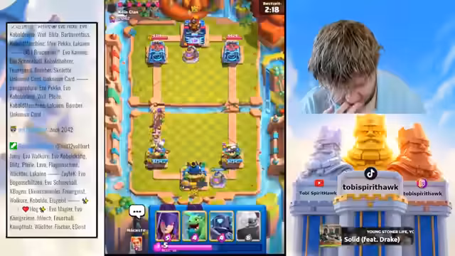 03:07:09Aus der Kritik an der Meta entsteht eine breite Frustration beim Streamer. Er beschreibt es als extrem frustrierend, nur ein einziges Deck spielen zu können, weil die Kartenlevel für andere Decks nicht ausreichen. Er sieht sich selbst in der gleichen Situation wie seine Zuschauer, die ebenfalls nicht die Mittel haben, um die Karten zu kaufen. Dies führt dazu, dass er Clash Royale nur noch spielt, wenn er live streamt, da ihn der Ansporn des Publikums motiviert, sonst aber kaum noch Lust auf das Spiel hat.