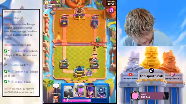 05:14:33Der Streamer beginnt mit dem erklärten Ziel, ein Comeback in der globalen Clash-Royale-Rangliste zu starten. Er betont, dass man den Turm verlieren muss, um ein geisteskranke Carback zu starten, und stellt klar, dass dies der einzig gangbare Weg ist. Er bekräftigt seinen Entschluss, hart zu arbeiten, um wieder an die Spitze zu gelangen, und deutet an, dass er seine Gegner zählt und mit ihnen um Punkte kämpfen wird.